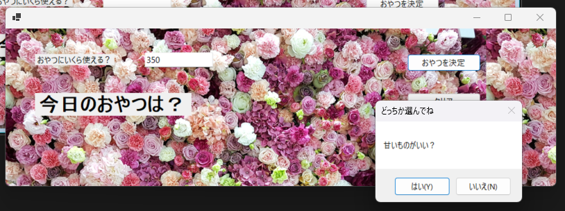 label2.Text = "お豆腐プリンにしましょう";