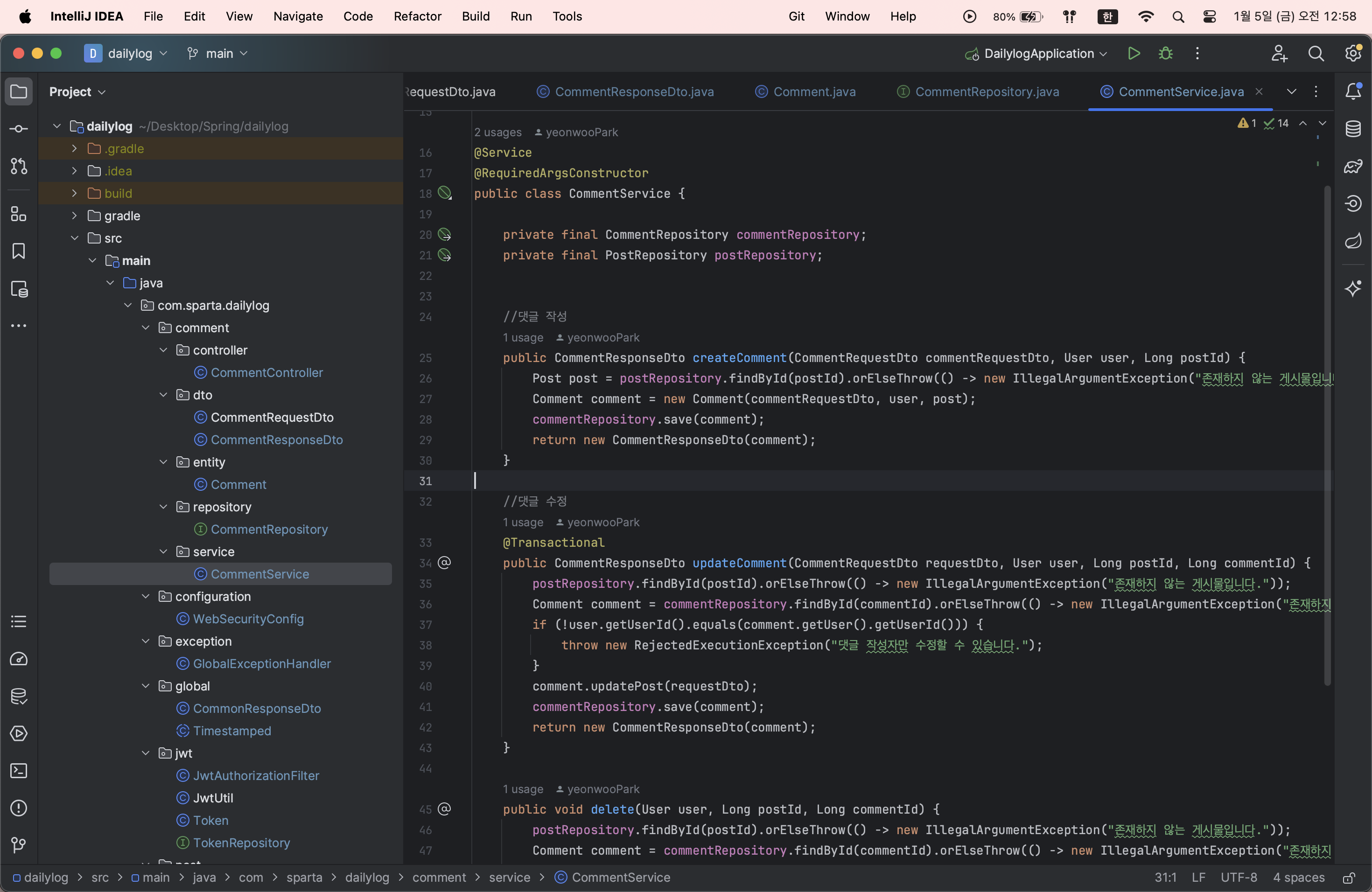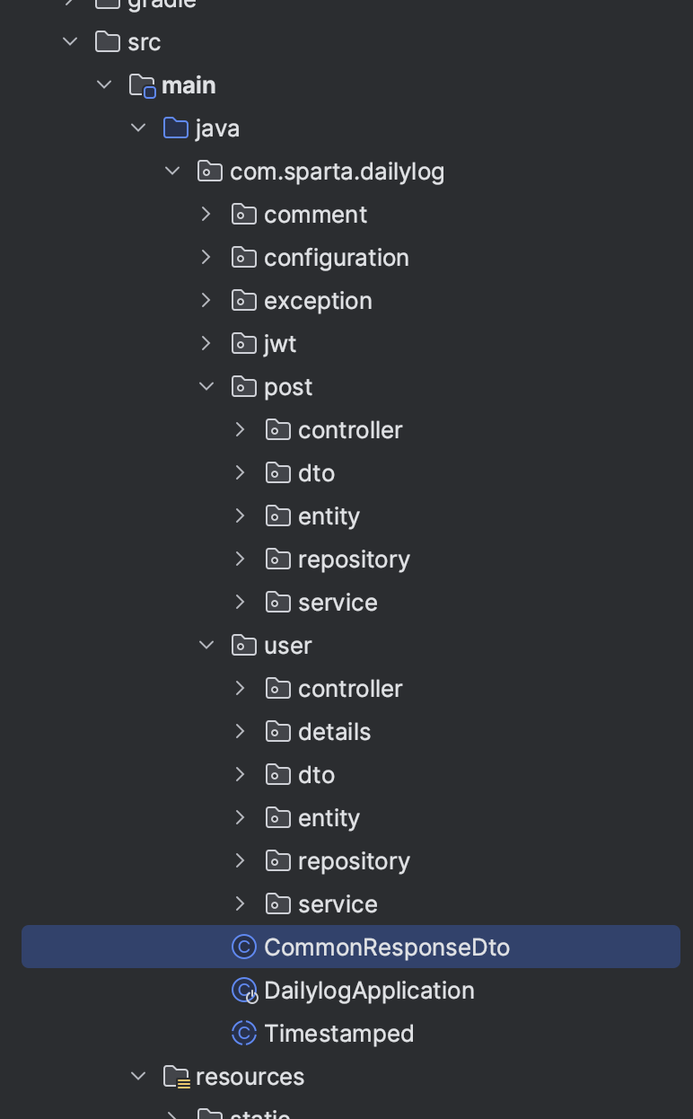프로젝트를 열면 디렉토리랑 메인어플리케이션(DailylogApplication)만 보이게!!