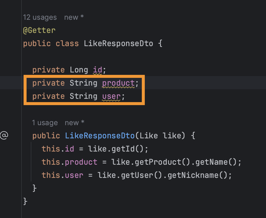 그래서 LikeResponseDto를 아래처럼 만들었는데
