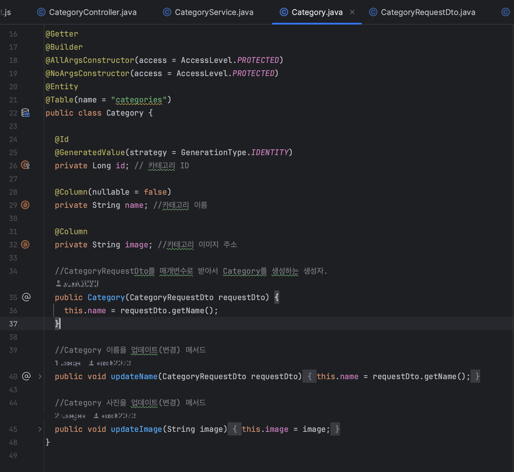 카테고리 entity는 이렇게 생겨서 정보('data')를 먼저 넣어주고