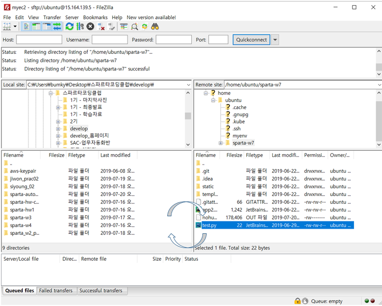 3. Filezilla통해서 배포 파일 업로드