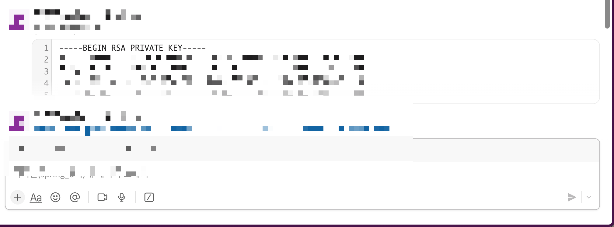 요렇게 슬랙 채팅에다 ssh key pair을 보내면