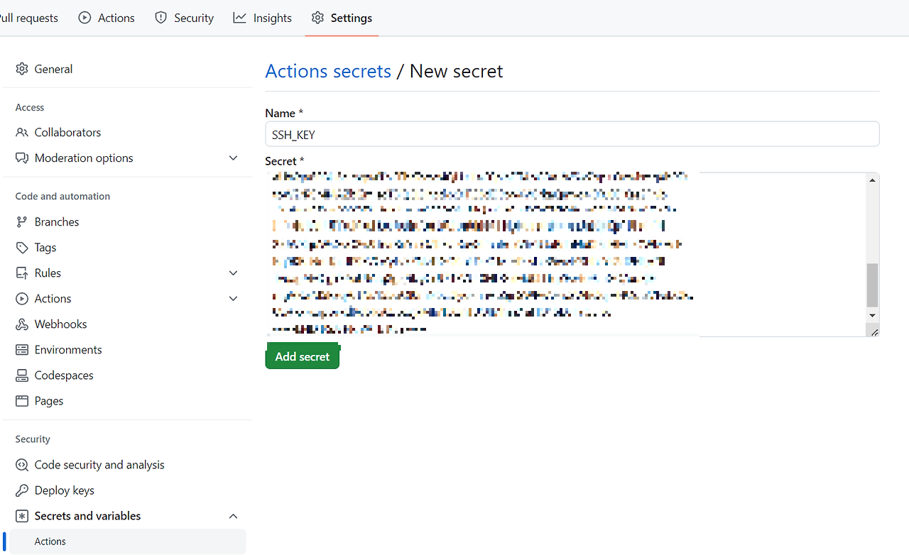 AWS EC2에서 다운받은 key pair를 Actions Secret key에 등록해야한다