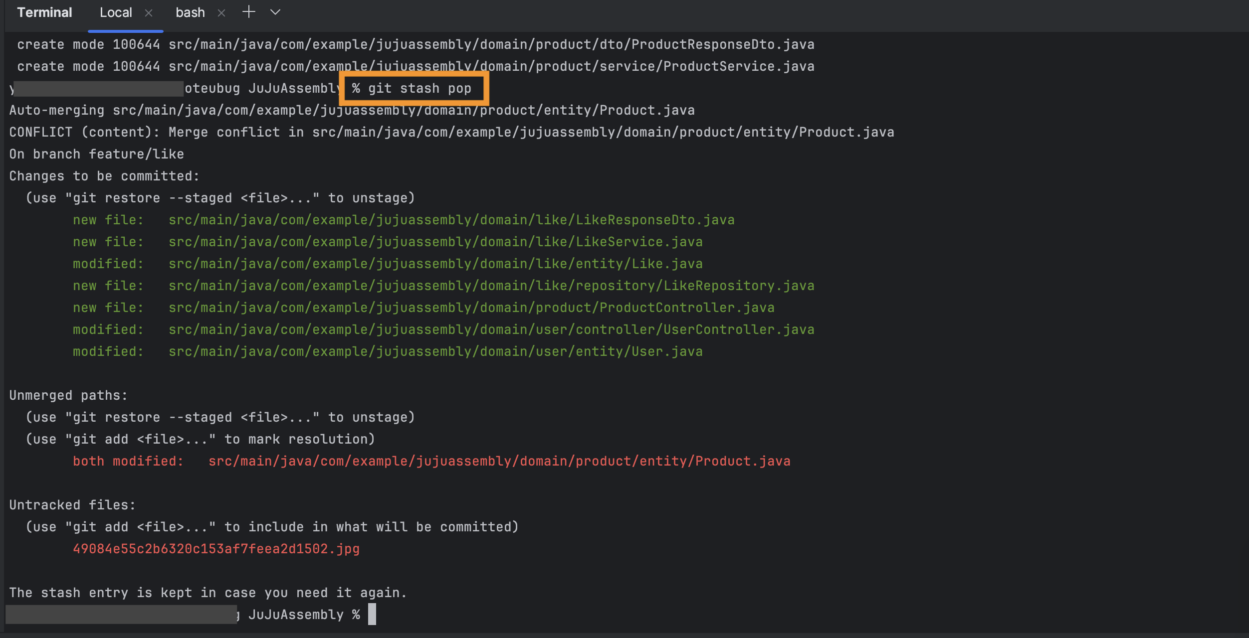 % git stash pop