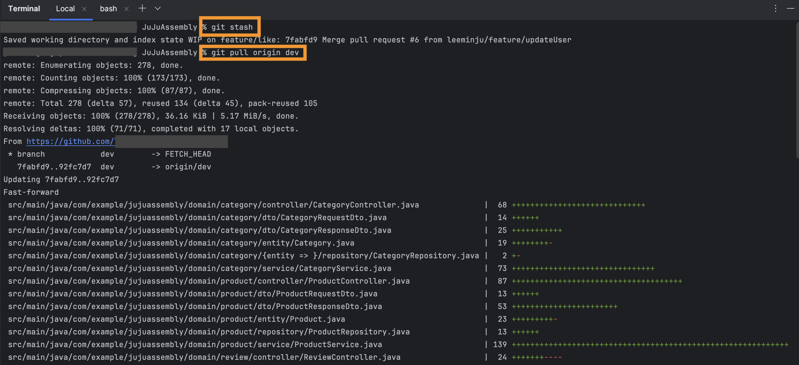 dev를 풀 해온 다음